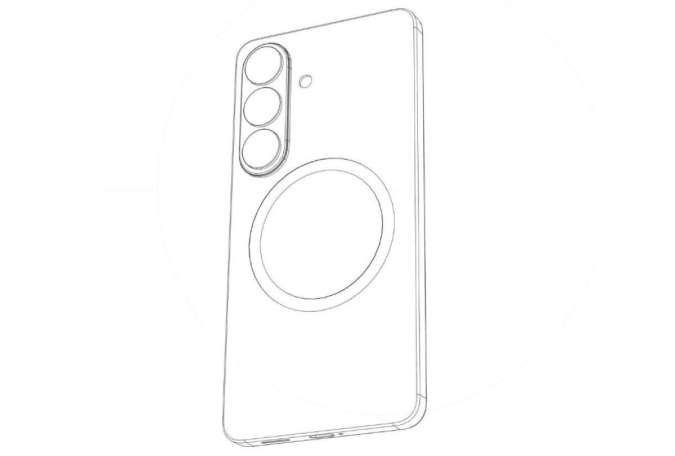 Sketsa tersebut menunjukkan adanya lubang melingkar untuk magnet guna memungkinkan pengisian daya tanpa kabel.